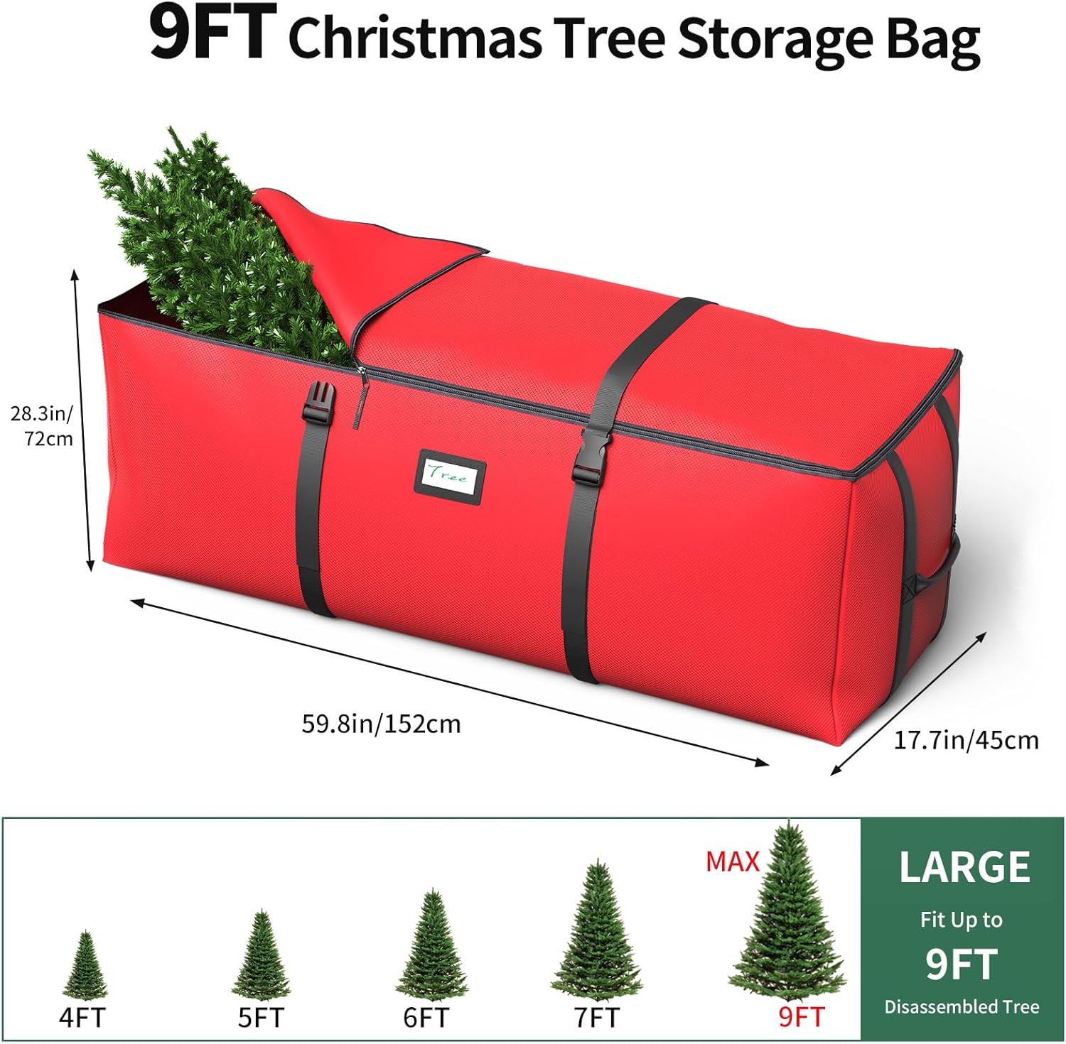 - 【Extra Large Fits up to 9Ft Tree 】Size in 59.8 "x28.3 "x17.7 ", spacious to put into a whole artificial disassembled Xmas tree up to 9ft and all decorations (garland, lights, ornaments) associated, one for all!